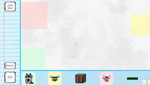 Another mechanic is that objects sometimes comes in bundle of multiple objects. Players do not have the power to change the layout, and are only able to drag the entire cluster into the play area. This allow us to create level with forced