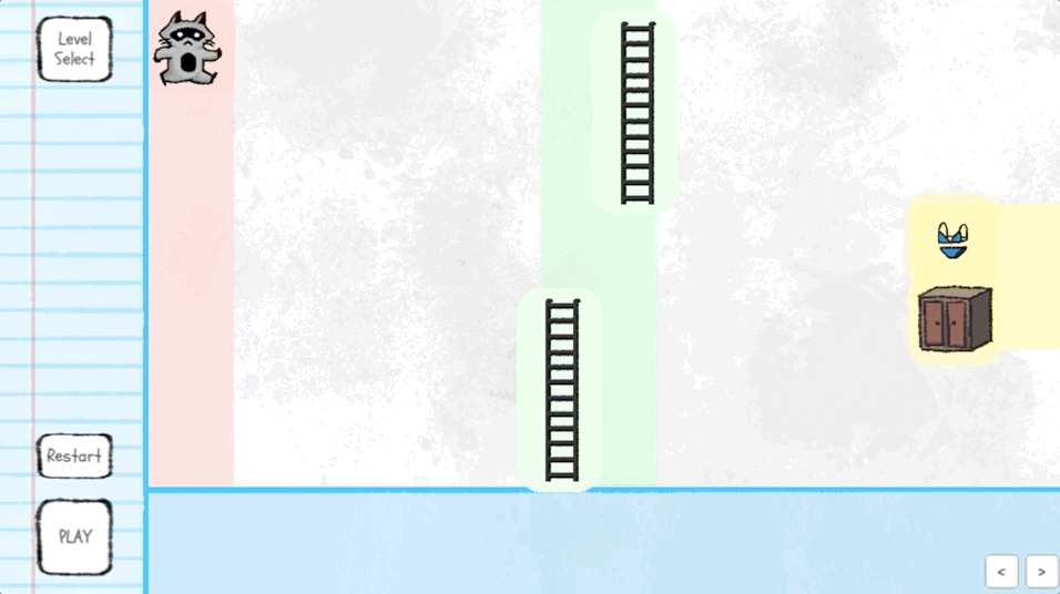 The solution is shown in the second image. In order to pass the level, both of the ladders are required to be placed at the very edge of the coloured area, players also have to hold down their right arrow key when starting the game to