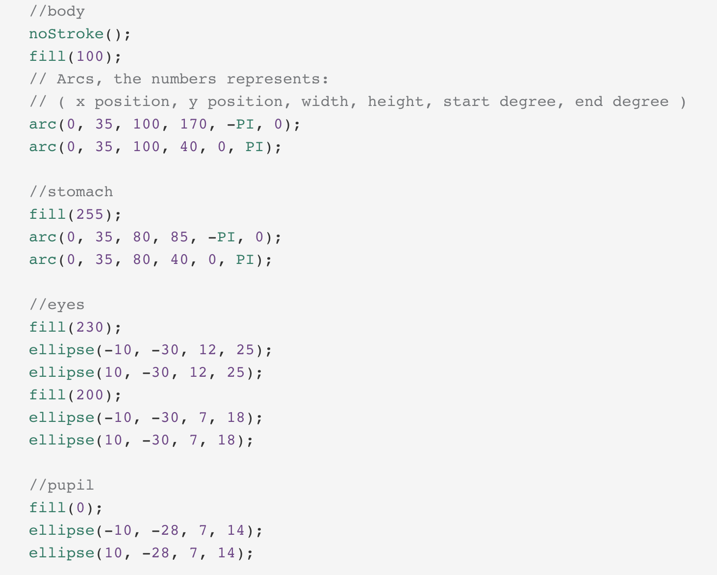 Adapting to different languages features and student's ability, each of the project implementation is slightly different. In the project shown above, one of the emphasis was to provide a chance for student to practice drawing primitive shapes with processing, while be creative with their custom character. Hence the out-of-place penguin as our fighter jet.
